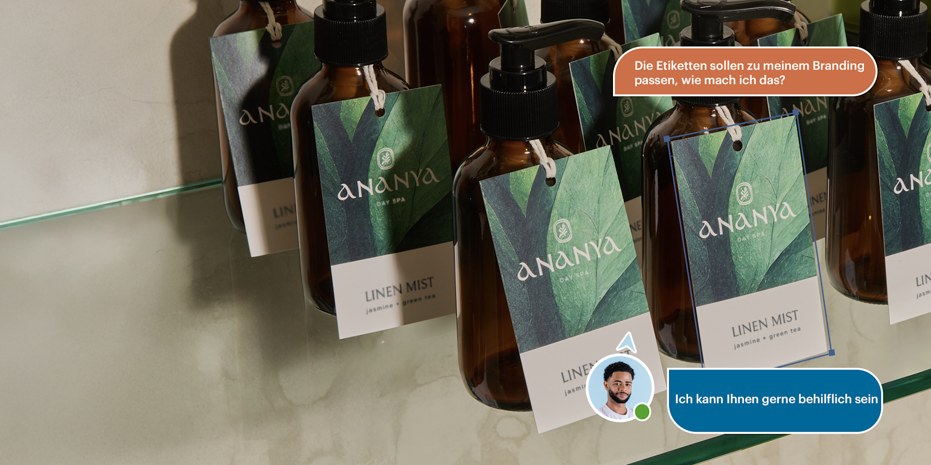 Durch Produktetiketten & Hängeetiketten in Ihrem Markenlook werden Ihre Brand und Ihre Produkte wiedererkennbar und attraktiv für die Kundschaft. Außerdem bieten sie Ihnen Platz für relevante Informationen wie Preise, Inhaltsstoffe, Materialien und natürlich Ihr Logo und Branding. Das richtige Produktetikett oder Hängeetikett hängt von Ihren Produkten und dem gewünschten Look ab. Wir von VistaPrint haben genau die richtigen Helferlein für Ihr Produkt. Elegante Klappetiketten eignen sich ideal, um kurze Nachrichten oder zusätzliche Produktinformationen hinzuzufügen, ohne dabei Platz für Ihr Logo einzunehmen Produktanhänger mit Folienprägung wirken edel und luxuriös, während Hängeetiketten dank unserer großen Bandbreite an Materialien auch schlicht oder sogar rustikal gestaltet werden können.