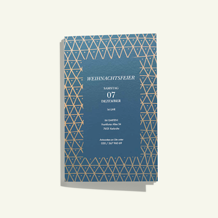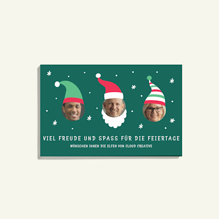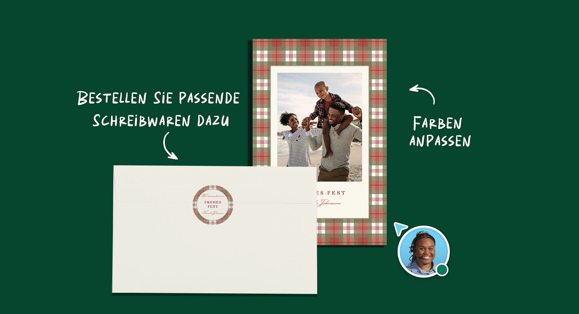 Vom klassischen Tannenzweigmotiv bis hin zu edlen Designs mit schwungvollen Schriftarten: Alle Festtagskartendesigns können Sie nach Herzenslust verzieren und anpassen. Und ob Sie nun einen witzigen Schnappschuss oder ein wunderschönes Familienbild zu Ihrem Kartenmotiv machen möchten, unter unseren Designvorlagen finden Sie sicher Ihren Favoriten. Extra-Tipp: Sie können Ihren Festtagskarten mit eleganten Veredelungen wie Folienprägung ein ganz besonderes Flair verleihen. Und nach dem Gestalten schließen Sie einfach die Bestellung ab und wir liefern Ihre festlichen Karten versandfertig an Ihre Tür. Und Sie? Sie versenden Ihre Karten und können sich auf gerührte Verwandte, glückliche Freunde und freudige Kunden einstellen.