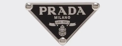 Pradas Emblem kombiniert eine sehr kantige und einfache äußere Form, um die Wortmarke einzugrenzen, mit einem Wappen und einem Band. Es ist modern und traditionell zugleich.