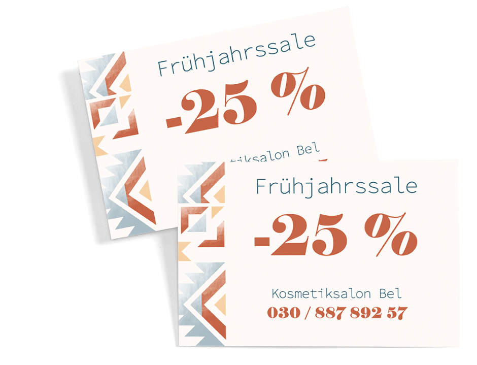 Ihre Visitenkarte kann außerdem zwei Zwecke auf einmal erfüllen. So können Sie die Rückseite beispielsweise mit einem Werbeangebot bedrucken oder zum Sammeln von Bonuspunkten nutzen.
