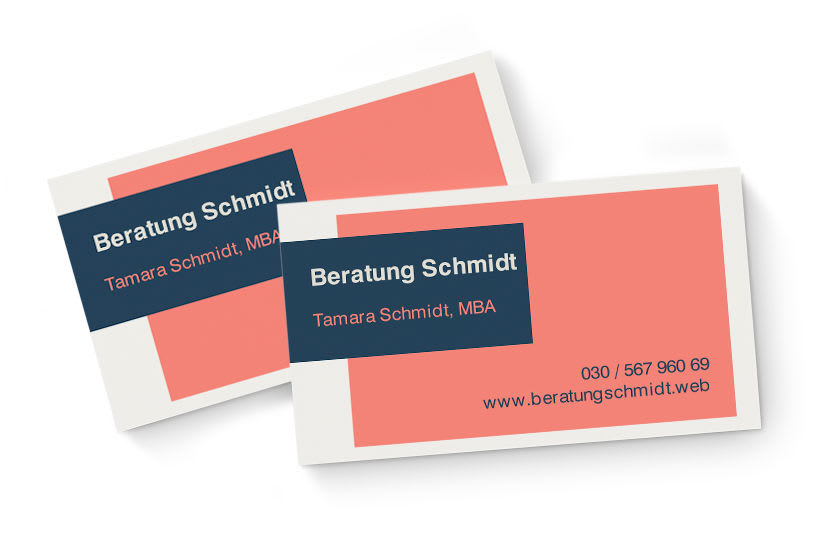 Um das volle Potenzial einer Visitenkarte auszuschöpfen, sollten Sie beide Seiten bedrucken. Die Rückseite eignet sich ideal, um Termine zu notieren, Treuepunkte aufzustempeln oder einen exklusiven Einblick hinter die Kulissen zu gewähren. Wenn Sie ein Restaurant oder eine Cocktailbar betreiben, wäre es doch eine großartige Idee, ein Rezept auf der Rückseite abzudrucken. Sie verkaufen handgefertigte Waren? Dann bietet es sich doch geradezu an, Ihre Visitenkarte als Etikett zu verwenden.
