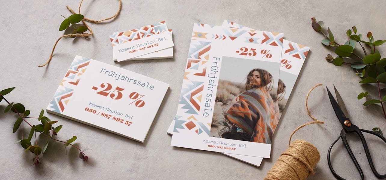 Ihre Visitenkarte kann außerdem zwei Zwecke auf einmal erfüllen. So können Sie die Rückseite beispielsweise mit einem Werbeangebot bedrucken oder zum Sammeln von Bonuspunkten nutzen.