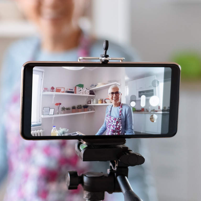 Williams erster Tipp für das Filmen ist, die Kamera zu stabilisieren, d. h. sie entweder auf einem Stativ oder auf einer geraden Oberfläche zu fixieren. Wenn Sie kein Stativ besitzen, tut es auch ein Bücherstapel oder ein Regal. „Verwackelte, mit der Handkamera aufgenommene Bilder sind ein cooles Stilmittel für Action-Filme, aber wenn Sie ein Lehrvideo drehen, eine Ankündigung machen oder ein Produkt vorstellen möchten, wirkt so etwas einfach nur störend.“