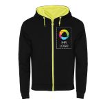In dieser auffälligen Kapuzensweatjacke mit Reißverschluss, leuchtenden Neondetails an Kapuze, Zugband und Reißverschlussschieber sind Sie auf stylische Weise warm gekleidet. Dieses bequeme Kapuzensweatshirt mit Reißverschluss eignet sich hervorragend für Outdoor-Aktivitäten oder als Freizeitkleidung und bietet mit seinem mikroperforierten Kapuzenfutter und den praktischen Vordertaschen viele Funktionen. Der Artikel ist ganz einfach zu personalisieren – nutzen Sie unser intuitives Studio, um Ihr Logo, Ihre Botschaft oder Ihre Firmeninfos hinzuzufügen. Benötigen Sie Unterstützung? Unsere Designprofis helfen Ihnen gern dabei, Ihre Ideen umzusetzen.