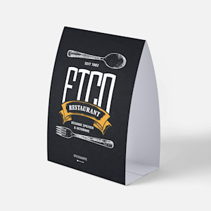 Unsere Dreieckaufsteller verwandeln jeden Tisch und jede Theke in ein Werbemedium. Sie werden professionell mit Ihrem Branding bedruckt und erhalten so ein einheitliches, ansprechendes Aussehen. Passend zu Ihrem Design können Sie aus 3 Papiersorten wählen, einschließlich einer Soft-Touch-Laminierung in Premiumqualität. Und mit 2 Größen zur Auswahl können Sie je nach Bedarf mehr oder weniger Inhalte einfügen. Wenn Sie ein besonders klares, schlichtes Layout bevorzugen, das auf keine Details verzichten muss, probieren Sie unseren QR-Code-Generator aus, um Ihrer Kundschaft einen direkten Zugang zu Ihrer Speisekarte oder Website zu bieten.