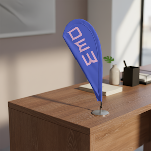 Machen Sie Ihre Marke zum Blickfang dank personalisierten Mini-Tischfahnen für Events, Tische und mehr.