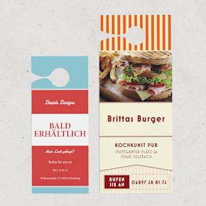 Sie suchen eine kostengünstige und bewährte Möglichkeit, für Ihr Unternehmen zu werben? Personalisierte Türhänger sind ein tolles Werbemittel, dass sich auf vielerlei Arten für die verschiedensten Projekte und Kampagnen einsetzen lässt. Mit Ihnen können Sie das beste aus Ihrem Marketing holen und die Zielgruppe auf spezifische Stadtteile, Straßen oder Häuser eingrenzen. Noch besser: Sie fallen sofort ins Auge und sind schwer zu übersehen.