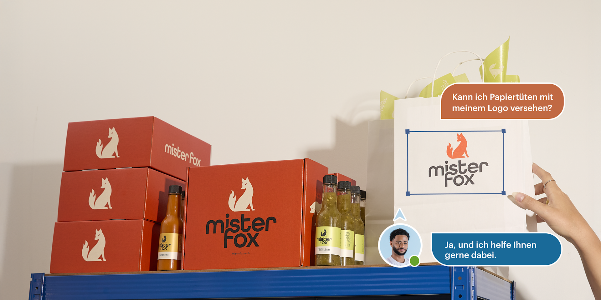 Diese Papiertüten aus robusten Materialien sind im hochwertigen Einfarb- oder Vollfarbdruck verfügbar, um Ihnen beim Gestalten eine Reihe kreativer Möglichkeiten zu bieten. Sie möchten wissen, wie Sie die Papiertragetaschen bedrucken lassen können? Das geht ganz einfach: Zum Gestalten Ihrer Papiertüten laden Sie Ihr Logo oder Werbemotiv in unserem Designstudio direkt hoch oder starten mit der Auswahl einer der flexibel anpassbaren Designvorlagen. Bei Fragen steht Ihnen unser Support gerne zur Seite.