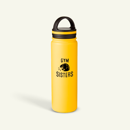 Zwei personalisierte Wasserflaschen, die für einen Fahrradladen werben.