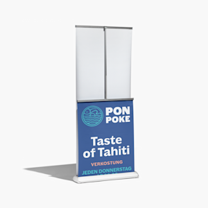 Ein Werbeschild, das von allen Seiten aus gut aussieht? Entdecken Sie die doppelseitigen Roll-Up-Banner von VistaPrint. Jedes Display enthält zwei separate Werbebanner, sodass Sie Ihr Unternehmen gleichzeitig in verschiedene Richtungen bewerben können. Wählen Sie dazu dasselbe Design für beide Seiten oder gestalten Sie verschiedene Motive für maximale Wirkung. Jetzt erhältlich in drei PVC-freien Materialien sowie mit einer kratzbeständigen Schutzlackierung für gestochen scharfe und raffinierte Werbebanner. Ihr Roll-Up-Banner ist robust und widerstandsfähig – ohne Kompromisse bei Style oder Nachhaltigkeit.