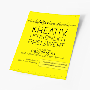 So einfach ziehen Sie die Aufmerksamkeit auf sich: Wählen Sie zunächst die gewünschte Größe (DIN B2, DIN B1, DIN A2 oder DIN A1) und Farbe (neongrün, neonorange oder neongelb) für Ihren Hingucker aus. Ihre Plakate mit einem Papiergewicht von 90 g/m² werden für den optimalen Kontrast mit satter schwarzer Tinte bedruckt und hochwertig fluoreszierend veredelt. Sie können sowohl im Innenbereich für besonders lange Haltbarkeit oder an geschützten Bereichen draußen für maximale Sichtbarkeit nach Einbruch der Dunkelheit aufgehangen werden.Im Handumdrehen gestaltet, personalisiert und gedruckt